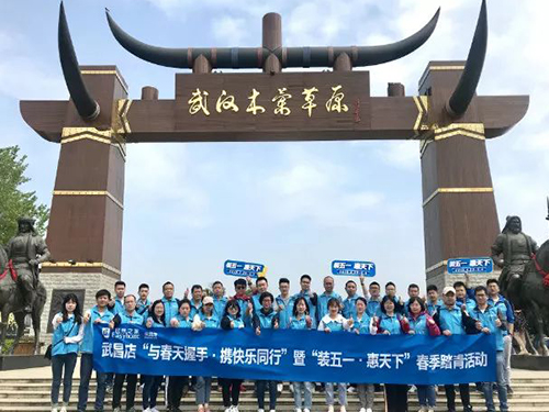 “裝五一˙惠天下”五一活動即將拉開帷幕,為放松心情,緩解員工的工作壓力,增進公司整個團隊之間的凝聚力,打好2019年上半年關鍵一仗,武昌店于4月16日-17日組織全體員工共赴木蘭草原,開展了以“與春天握手˙攜快樂同行”為主題的員工團建活動。